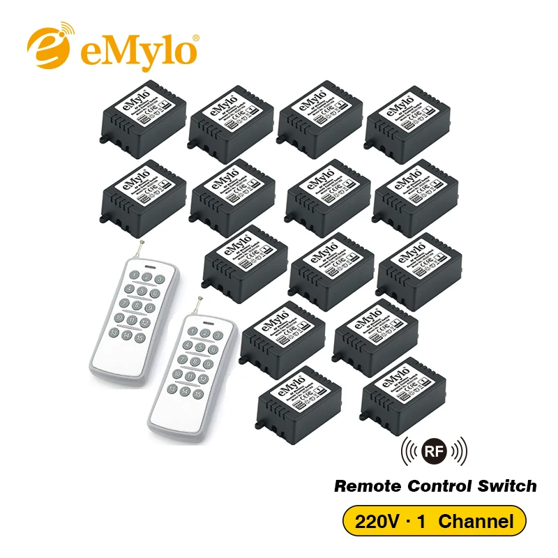 HOT Sale eMylo RF 433Mhz Remote Control Light Switch AC 220V-230V-240V 1000W 2X Transmitter 15X 1Ch Relays T