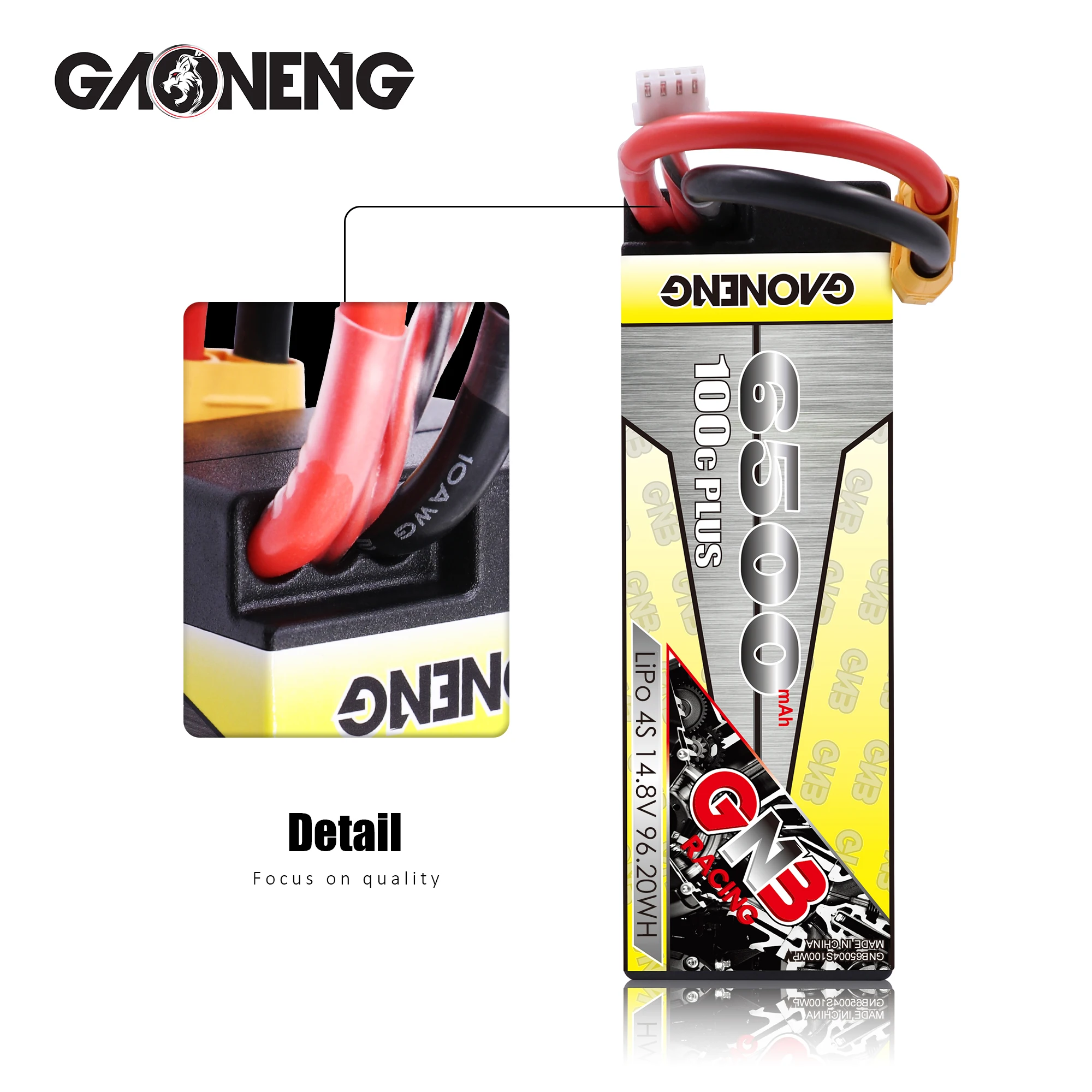 Gaoneng GNB 6500mAh 4S 14.8V 100C PLUS Hardcase LiPo Battery with T/XT90/XT60 Plug for 1:8 1/8 RC C