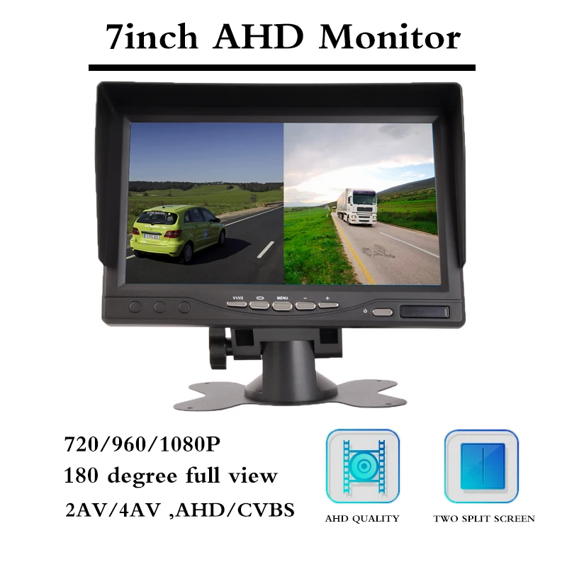 7 Inch Car Camera Reversing Display 2 Split Screen Aviation Head Remote Control 12-24V Waterproof C